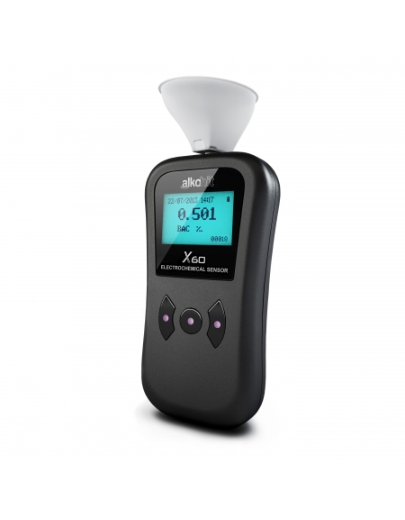 Alkohit X60 to dokładne i funkcjonalne urządzenie. Możliwość przeprowadzania pomiarów przy użyciu nasadki lejkowej oraz wbudowana na stałe bateria litowo-jonowa ładowana z zasilacza sieciowego lub poprzez port USB komputera gwarantują niskie koszty eksploatacji. Bateria litowo-jonowa cechuje się brakiem efektu pamięci oraz samorozładowania, co zapewnia wyjątkowo długą żywotność oraz gotowość do pracy nawet po dłuższym czasie nieużywania. Zastosowanie ogniwa dużej pojemności to wiele godzin pracy bez konieczności ładowania. Nasadka lejkowa umożliwia przeprowadzenie testu bez użycia ustnika, co pozwala na szybkie i komfortowe przebadanie dużych grup osób.