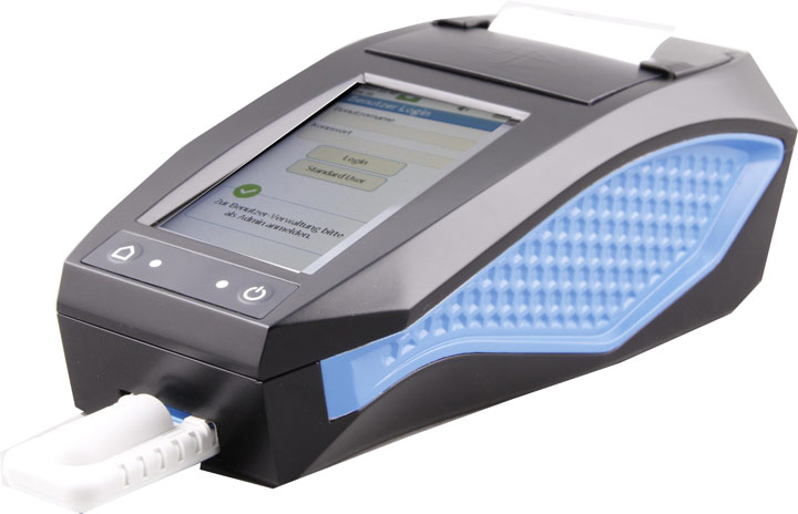 Przenośne urządzenie do obiektywnej analizy i dokumentowania wyników badań na zawartość narkotyków w ślinie osób badanych Zalety: Pełna mobilność. Można używać zarówno pomieszczeniach, na zewnątrz oraz w samochodzie Idealne do pracy w warunkach drogowych Zabezpieczenie danych wyników pomiarów. Brak możliwości ingerencji operatora Bryzgoszczelna i wytrzymała obudowa Wbudowana drukarka Możliwość wprowadzenia dodatkowych danych dotyczących badanego i osoby przeprowadzającej badanie Poręczne, intuicyjne i łatwe w obsłudze Zalety: - Pełna mobilność. Czytnik można używać w pomieszczeniach, na zewnątrz i w samochodzie. - Zabezpieczenie danych wyników pomiarów. Brak możliwości ingerencji operatora. - Możliwość wprowadzenia dodatkowych danych dotyczących badanego i osoby przeprowadzającej badanie. - Poręczny i łatwy w obsłudze.